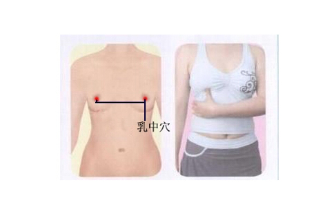穴位:胸骨正中线上,与第4、5根肋骨交界的地方,两乳头正中间。