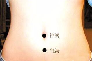 气海:在下腹部,前正中线上,当脐中下1.5寸。