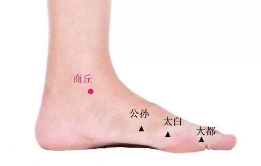 用法:用手指按揉商丘穴,保持酸重感即可,每次3分钟左右,两手交替做。
