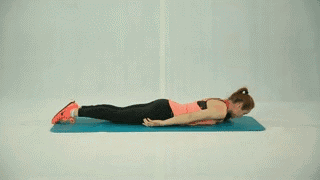 起始姿势:选择一个俯卧姿势,双手打开上抬至45度;动作的开始:呼气的时候将上半身肋骨以上位置上抬,眼睛看下方。进行12-15次 3-5组